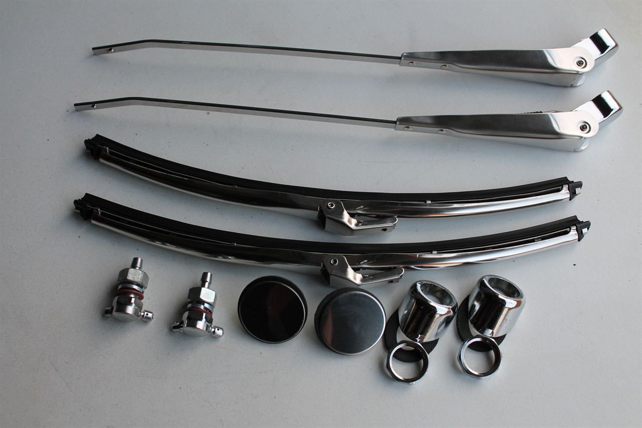 Roestvrijstalen ruitenwisser set, past op alle links gestuurde Mini's. Inclusief: 2 x Linksgestuurde ruitenwisser arm 2 x RVS 10" ruitenwisser 2 x dubbel verchroomde sproeiers 2 x Chrome ruitenwisser houders 2 x RVS blindplaatjes